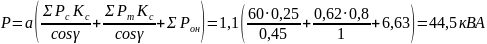 где: Р - требуемая мощность источника электроэнергии или трансформатора, кВА;
