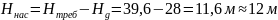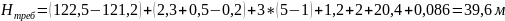 39,6 м, следовательно, требуется повысительная установка.