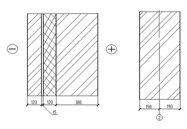 Внутренние стены выполнены двухрядной кладкой толщиной 380 мм. Для кладки использован керамический рядовой кирпич М 100, размером (250х120х65мм), ГОСТ 530-2007.