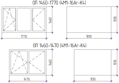 Остальные окна принимаю конструктивно ОП 1460-1470 (4М1-16Аr-К4).