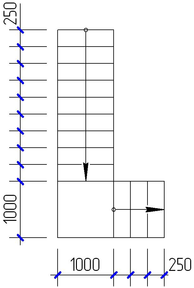 Внутриквартирная лестница выполнена из древесины - дуб III сорта, с забежными ступенями по тетивам с двух сторон. Размеры ступеней: высота 200 мм, ширина 250 мм. Ширина лестницы 1 м. Уклон лестницы 1:1,25.