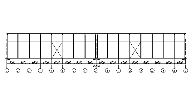 Т.к. длина здания по заданию составляет 96 м, то назначаем два температурных блока по 48м. Колонны торцевых рам блока смещаются внутрь здания с разбивочных осей на 500 мм с целью устранения доборных элементов в покрытии. В середине каждого температурного блока располагаем вертикальные крестовые связи жесткости (рис. 1.2).