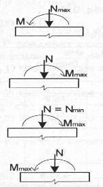 Ниже приводятся наиболее опасные сочетания усилий (рис. 4.1), найденные по наибольшим ядровым моментам (табл. 4.2):