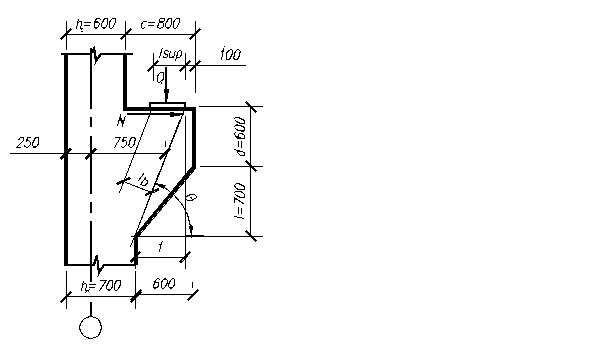 Т.к. вылет консоли с = 800мм меньше 0,9·hк = 0,9·(700+600)=1170мм, то расчёт ведётся как для короткой консоли.