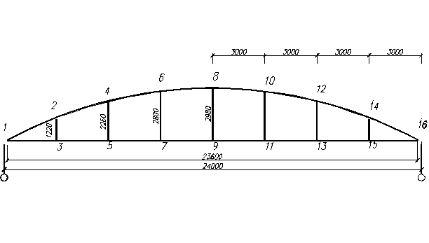 Рис. 5. - . Геометрическая схема безраскосной фермы.