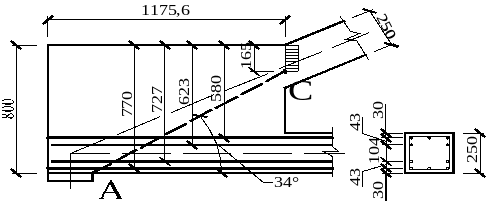 Расчет из условия изгиба опорного узла по наклонному сечению АС (рис. 5.9).