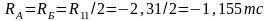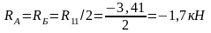 МII =∑ МII=-3,44+0=-3,44кН*м