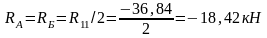 где Sg =1,8 кН/м2 снеговая нагрузка в зависимости от района строительства; μ = 1, Fсн прикладывается так же как и Fп.