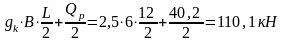 где gк=1 кН/м2+1,5 кН/м2=2,5 кН/м2 – расчетная нагрузка от веса 1 м2 кровли и плит покрытия;