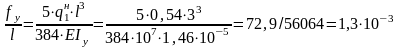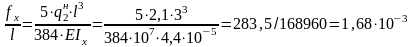 f/L= (2.13хqнхL3) /384EJ= (2.13х0,755х1,253) / (384х107х10 - 7) =