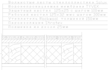 Тип кровли: волнистые листы стеклопластика SALUX.