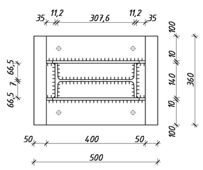 Стенку перекрывают двумя вертикальными накладками сечением 900×10 мм.