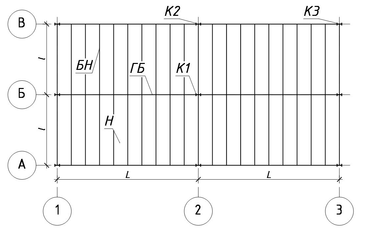 Балочная клетка состоит из следующих элементов: стального настила (Н), укладываемого по балкам настила (БН), главных балок (ГБ), располагаемых обычно параллельно большей стороне перекрытия. Таким образом, балки настила воспринимают полезную нагрузку от массы настила и пола и передают всю нагрузку на главные балки, а главные балки – на колонны.