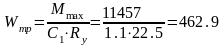Требуемый момент сопротивления с учетом развития пластической деформации, см3