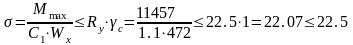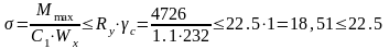 -расчетное сопротивление стали Ry=250 Мпа = 22,5 кН/м2