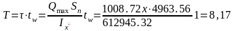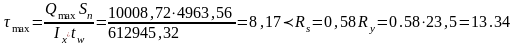 Проверяем принятую толщину стенки из условия прочности балки на срез: