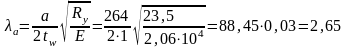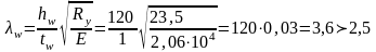 Проверим необходимость установки ребер жесткости при условии, если λw≥2,5 необходимо ставить вертикальные ребра жесткости: