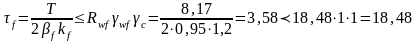 Проверим прочность по границе сплавления шва: