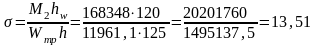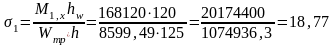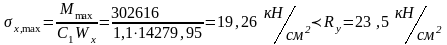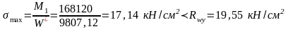 проверяем нормальное напряжение в поясах в середине балки: