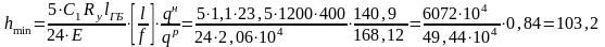 Из условия обеспечения требуемой жесткости (прогиба) высота ГБ должна быть не менее hmin
