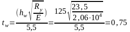 Проверяем принятую толщину стенки из условия обеспечения местной устойчивости стенки (без продольных ребер жесткости):