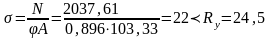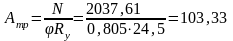 -расчетное сопротивление стали Ry=240 МПа = 24,5 кН/см2