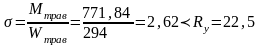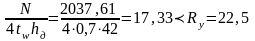 Таким образом с запасом прочности усилие в колонне полностью передается на траверсы, не учитывая прикрепление торца колонны к плите.