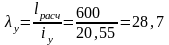 Рассчитаем гибкость принятого сечения относительно оси x: