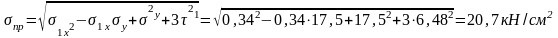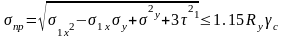 Для стенки должно выполняться условие (проверка по приведенным напряжениям)