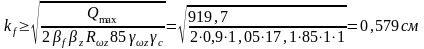 . Исходя из этого, определяем требуемый катет шва: