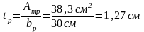 Назначим ширину ребра равной bp = 300 мм. Толщина ребра:
