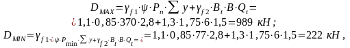 │ Вертикальное давление на раму: Dmax; │ 989.0 │ кН │