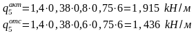 │ Активная погонная нагрузка от ветра │ 1.9 │ кН/м │