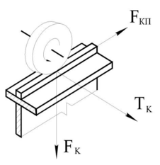При движении мостового крана на крановый рельс передаются силы трёх направлений, рисунок 2.2.