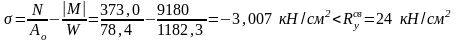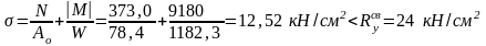 N= -373,0 кН; M = -91,8 кНм; Q = 3,6 кН;