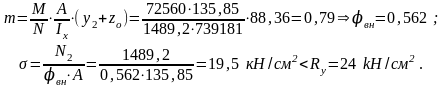 Устойчивость сквозной колонны как единого стержня из плоскости действия момента проверять не нужно, так как она обеспечена проверкой устойчивости отдельных ветвей.