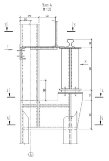 Из условия прочности стенки подкрановой ветви в месте крепления траверсы (линия 1-1) определяем высоту траверсы