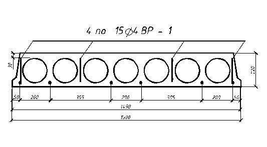 Заменяем пустоты равновеликими по площади и моментам инерции прямоугольниками. При круглых пустотах диаметрами d сторона квадратного отверстия равна: hred=0,9d=0,917=15,3 см.