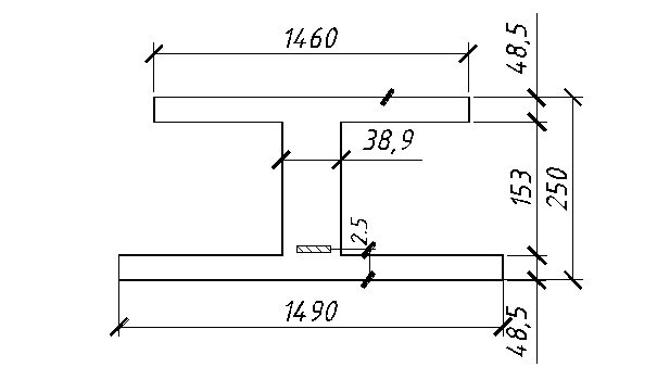 Толщина полок, приведенного сечения hf = hf’=(25-15,3)0,5=4,85 см.