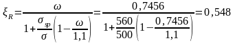 Ранее было принято R = 0,55. Необходимо уточнить значения коэффициента R и площади сечения арматуры Asp.