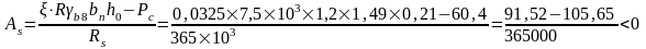 Поскольку полученное значение совпадает со значением, принятым в п.2.3.2 R=0,55, то перерасчет арматуры не требуется.