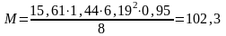 где (g + υ) – полная расчетная нагрузка на плиту перекрытия; (g + υ) = 15,61кН/м2;