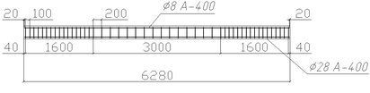 Для продольной рабочей арматуры ø28 A-400 (>ø22) принимаем поперечную арматуру ø8 A-400.