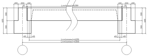 Учитывая размер ригеля и величину номинальной длины плиты, определим конструктивную длину плиты по формуле: