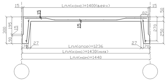 Конструктивная ширина плиты принимается на 1см (0,01м) меньше номинальной ширины, равной по величине принятой ширине bпл = 1,44м. Высоту плиты принимаем равной 30см.
