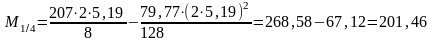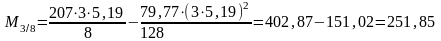 Для построения эпюры материалов необходимо в первую очередь построить эпюру моментов, возникающих ригеле и нанести на нее максимальное и промежуточные значения моментов. Промежуточные значения величин моментов определяем по формулам: