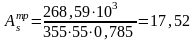 Rs – расчетное сопротивление арматуры; Rs = 355МПа;