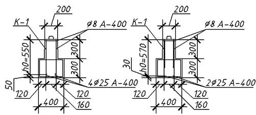 Для продольной рабочей арматуры ø25 A-400 (<ø22) принимаем поперечную арматуру ø8 A-400.