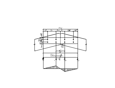 Фактическое число промежуточных подкрепленных точек растянутой кромки на участке 2 – 8 равно четырем. Расчетная модель элементов, использованная при выводе формул СНиП П-25-80 для расчета на устойчивость плоской формы деформирования, предусматривает, что дискретные промежуточные подкрепления растянутой или менее напряженной кромки элемента идут на участке lр с одинаковым шагом “Пособие по проектированию деревянных конструкций”. Для приближения фактического раскрепления наружной кромки на участке 2 – 8 к идеализированной расчетной модели подкрепляющее действие второго от конькового узла прогона не учитываем.