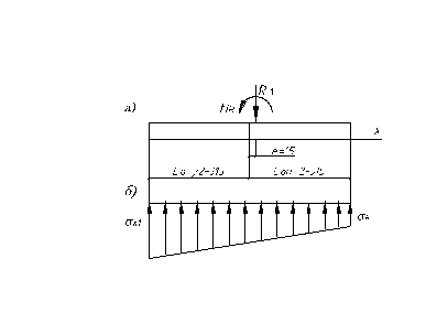 а - расчетная схема; б – эпюра напряжений под опорной плитой от совместного действия нагрузок Rа и Мн
